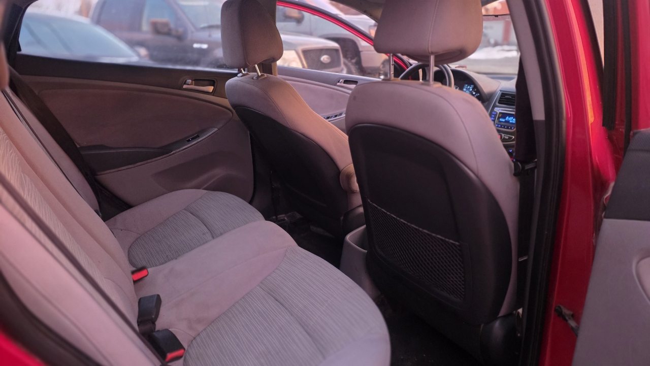 Step into this fiery red 2016 Hyundai Accent and get ready for the ride of your life! This car is all about keeping you and your loved ones safe, with features like child safety door locks, airbags galore, and a vehicle anti-theft system to give you peace of mind. Whether you're cruising around town or hitting the open road, the ABS brakes and traction control will keep you in command no matter what surprises the road may bring. With a sleek design and steel wheels that add a touch of style, this Hyundai Accent is sure to turn heads wherever you go.